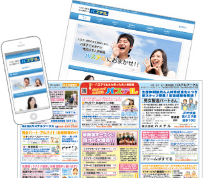八王子で生まれ、八王子で育った求人情報紙「パステル」は地域密着型求人情報紙として1986年の創刊以来、地元の皆様に親しまれ、大変ご好評をいただいております。八王子市、日野市、多摩市内をポスティングで配布する求人情報紙です。